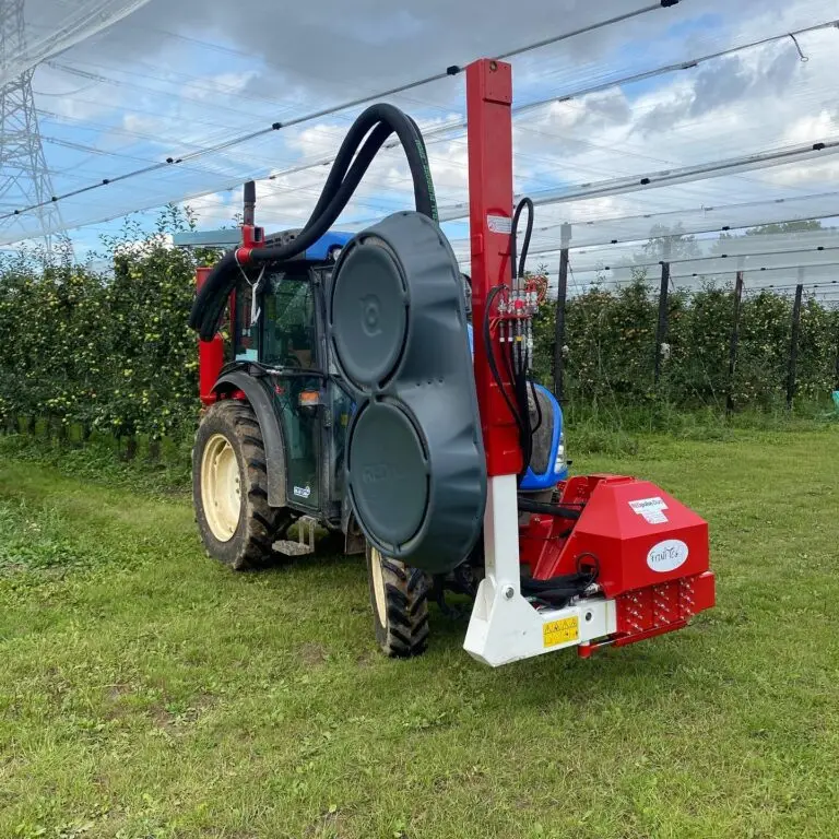 инновационный пневматический модуль дефолиации для яблоневых деревьев. Высокочастотный воздушный поток эффективно удаляет затеняющие листья, улучшает равномерное окрашивание плодов, повышает долю первого класса, снижает риск заболеваний и уменьшает количество сборов.